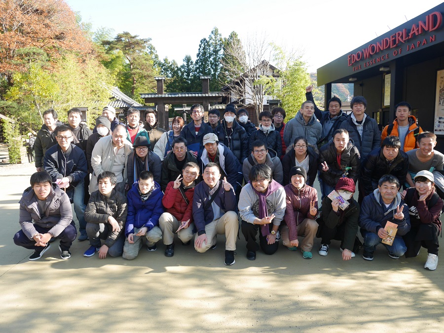 年に1回一泊二日の社員旅行を実施しています。障がい者社員に色々な経験をして、楽しんでもらいたいという思いから、社内で旅行のスケジュールを決めています。障がい者社員の笑顔によって、健常者社員も幸せを感じ、全社員笑顔が溢れます。2019年は初めての試みとして、往復電車での旅。電車好きな社員も多く、大好評でした。 <2019年11月30日(土)~12月1日(日) 鬼怒川温泉>